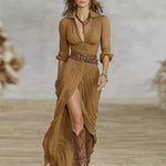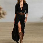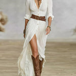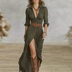 Élégante et intemporelle, cette robe combine le confort naturel du coton et la légèreté du lin pour une tenue à la fois chic et agréable à porter. Ses manches longues et ses revers plissés apportent une touche sophistiquée, parfaite pour les occasions décontractées comme pour les sorties habillées. Sa coupe fluide épouse le mouvement tout en garantissant aisance et féminité.
