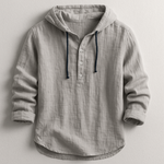 A textura leve e respirável do linho proporciona uma sensação agradável na pele, ideal para todas as estações, enquanto o capuz ajustável acrescenta um toque moderno e funcional. Perfeita para um estilo sofisticado, mas descontraído, adequada tanto para dias ativos como para noites mais relaxadas.