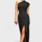 • Elegância intemporal: o design assimétrico do vestido e a gola inclinada dão um toque sofisticado ao seu visual.